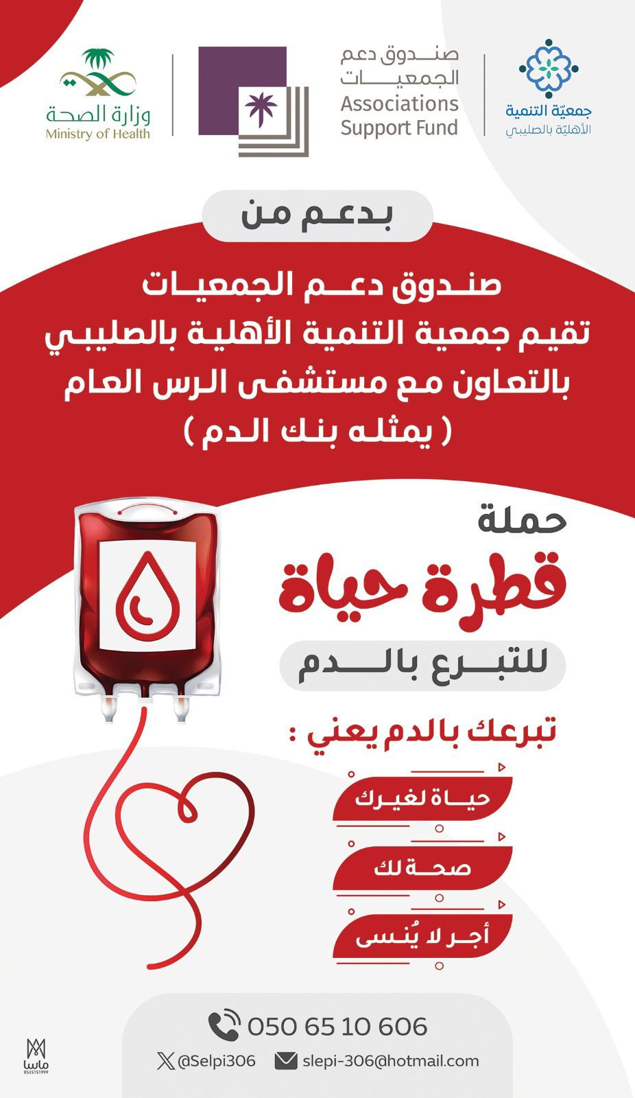 أقامت جمعية التنمية الأهلية بالصليبي في تاريخ 15 يناير 2026م حملة قطرة حياة للتبرع بالدم، وذلك بالشراكة مع مستشفى الرس العام ممثلًا ببنك الدم.